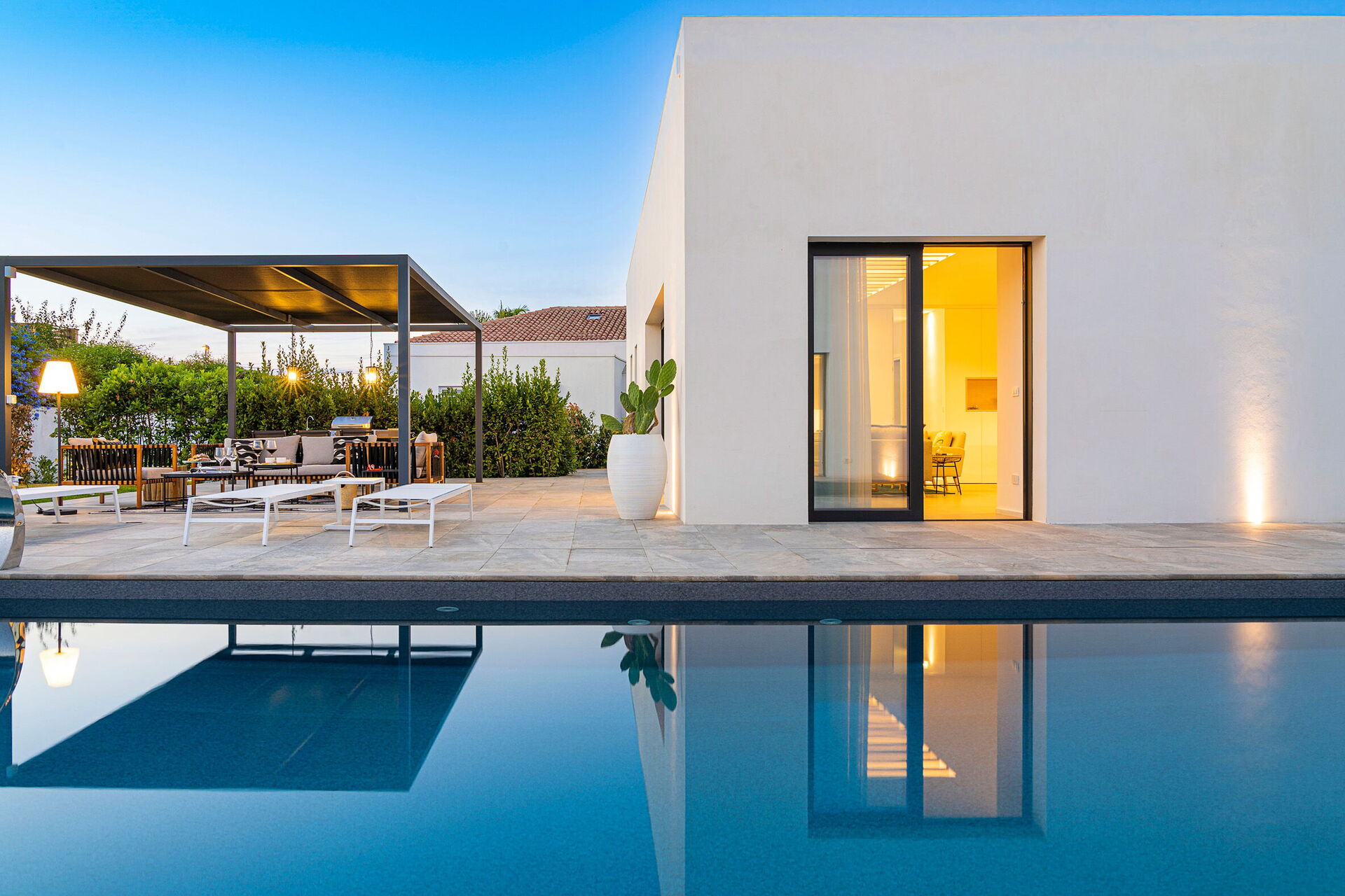 Villa Bonita se compose de deux unités situées l’une en face de l’autre et séparées par la magnifique piscine; chaque unité dispose de 3 chambres et la propriété peut accueillir jusqu’à 12 personnes au total. Elle est située à seulement 2 km de la mer et à quelques kilomètres du centre historique de Syracuse. Les hôtes pourront rejoindre facilement les villes baroques du Val di Noto et les réserves naturelles de Vendicari, Pantalica et Cassibile, mais aussi le parc de l’Etna. La propriété est située dans un quartier résidentiel calme et son style moderne ainsi que sa magnifique piscine avec hydromassage (station d’épuration au sel) rendront vos vacances en Sicile uniques.