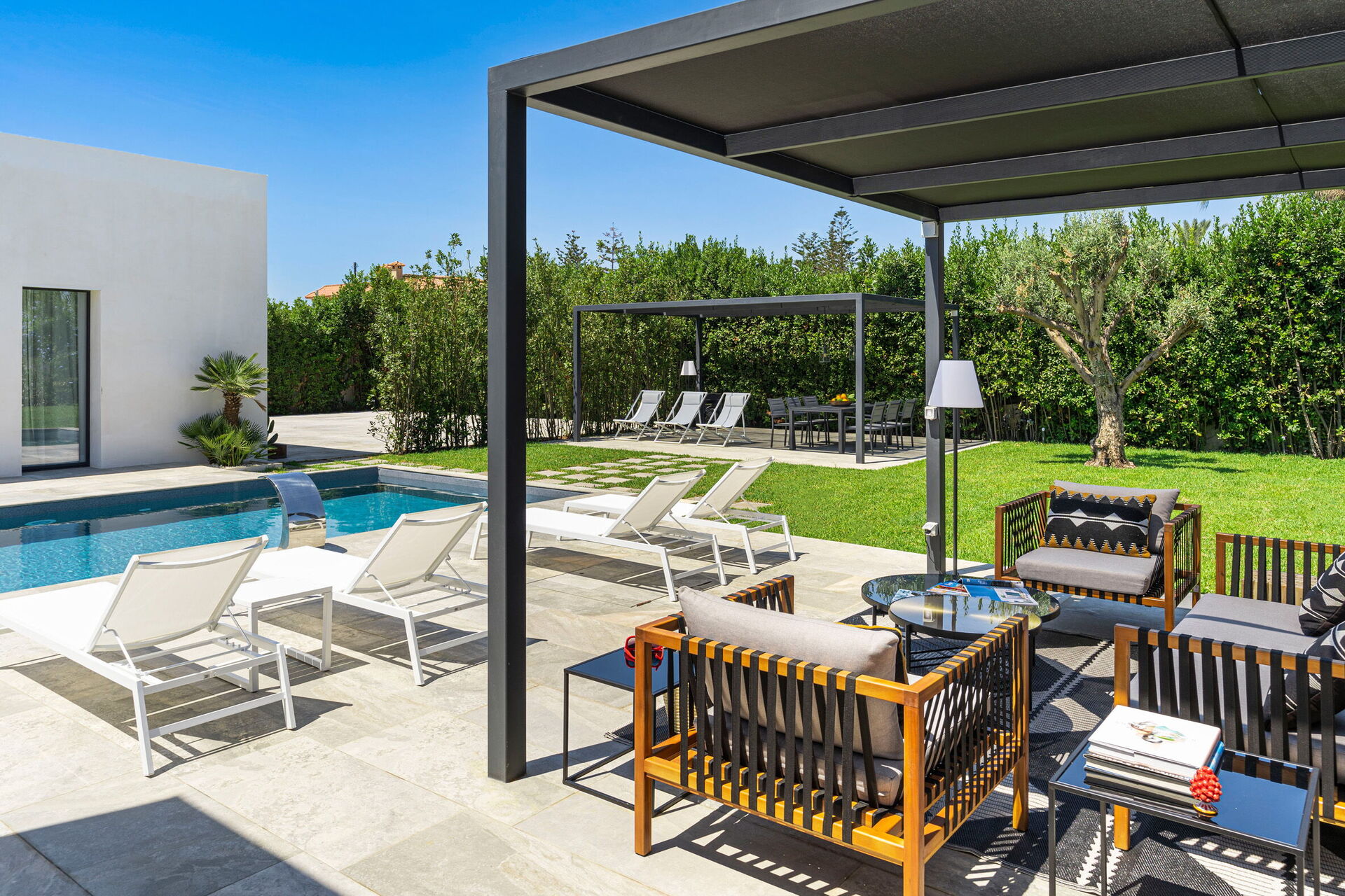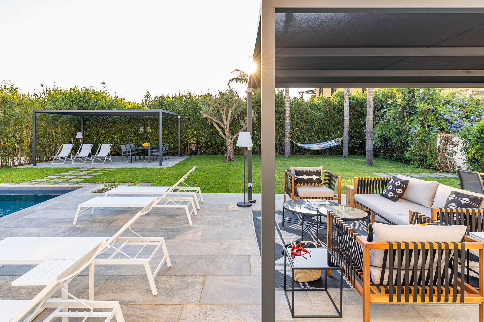 Meuble de jardin, Barbecue, Piscine, Espace extérieur pour les repas en plein air, table à manger