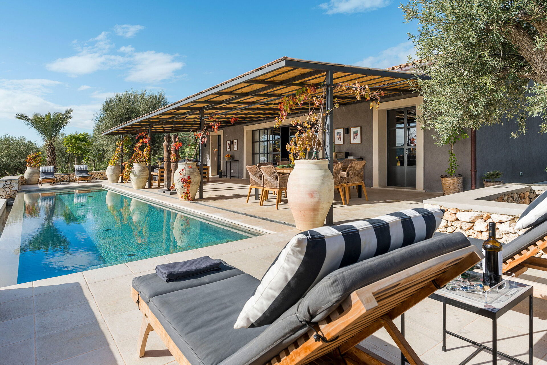 För gästernas bekvämlighet: 2 sovrum och 4 badrum, varav ett utomhus; privat pool (14 x 3 meter; djup 1,4 meter); privat trädgård, möblerad veranda med bord och stolar för utomhusmåltider, grill, WiFi-internet, luftkonditionering, parkering.